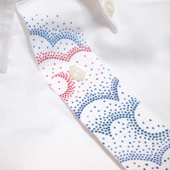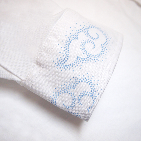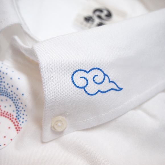 「彩雲(さいうん)」とは、雲が太陽の近くを通りがかった際に 緑や赤に彩られる現象の事で、昔から吉兆(めでたい出来事として起きる前触れ) とされています。 袖口に入った雲のデザインもポイントです。 この商品のサイズ展開は、M・L・XL です。 綿100%:オックスフォード