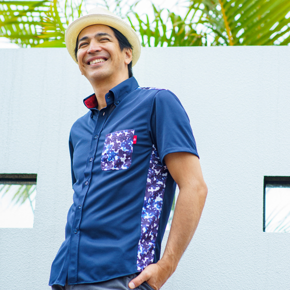 ドライメッシュ素材の良いとこ取りで、機能的な「かりゆし」が生まれました。