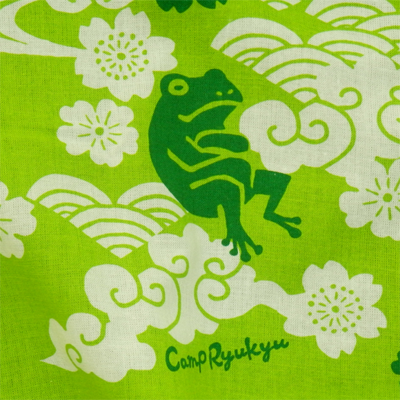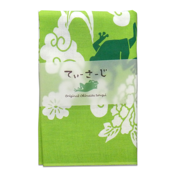 「オキナワアオガエル」が走ったり、おしゃべりしたり、お昼寝したり・・・♪ そんなお茶目な動きがキュートなデザインです! 「てぃーさーじ」とは、沖縄方言で「てぬぐい」のことをいいます。 汗を拭いたり、飾ったり、包んでみたり♪ 使い方はいろいろ☆プレゼントにもピッタリ! 長さ:90cm 横幅:33cm 綿100%(日本製)