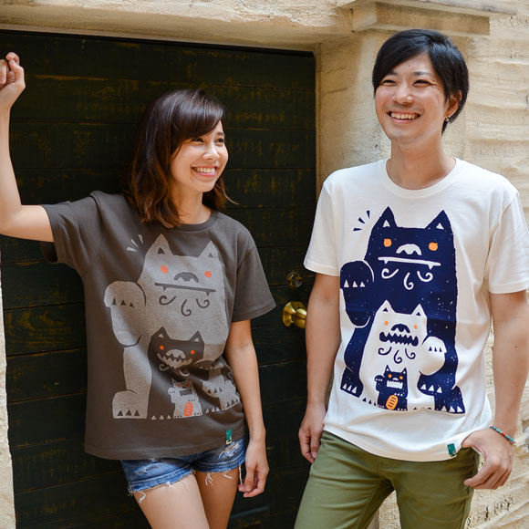 悪いものを払い、福を招くシーサーの姿がおちゃめなデザイン。 着てるだけでなんだかご利益がありそうな1枚です♪ これぞ沖縄スタイル!? 「招き猫」ならぬ「招きシーサー」!! 一説によると、上げる手によって意味が違うとされています。 右手は「お金」を招き、左手は「人」を招くと言われてるそうです。